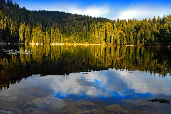 Lac Vert – Alsace Le Lac Vert c’est aussi le vrai nom de ce lac perdu dans la vallée de Munster à environ 1000m d’altitude. Il doit son nom au reflet des sapins qui l’entourent et à une algue qui prolifère de fin juin à fin juillet.