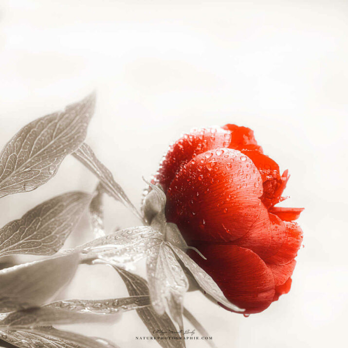 Rosée sur une rose rouge